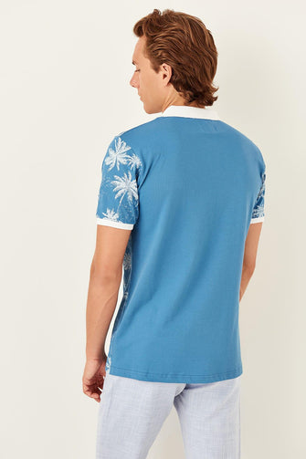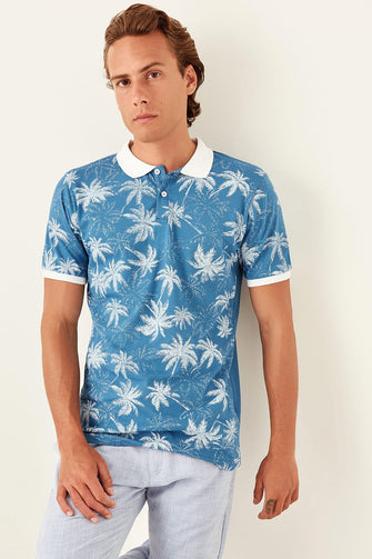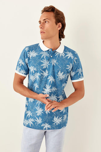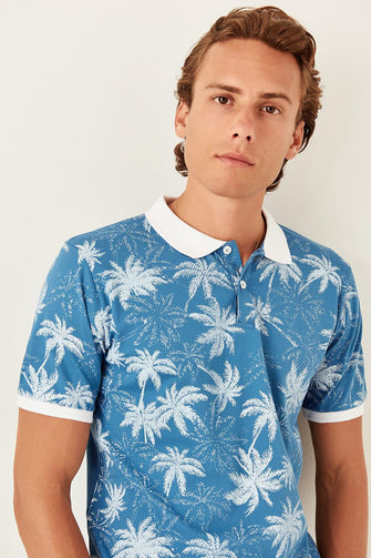 Blue Mens Printed Polo Collar Short-Sleeve T-Shirt TMNSS19TS0469