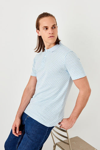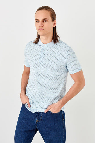 Blue Mens Printed Polo Collar T-Shirt TMNSS19GS0113