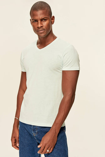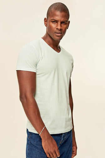 Blue Men's T-Shirt Presser - Cotton V Neck