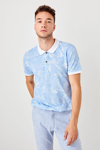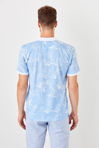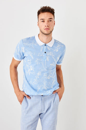 Blue New Men 'S Printed New Polo Collar T-Shirt