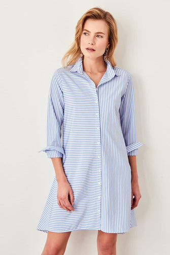 Blue Striped Shirt Dress