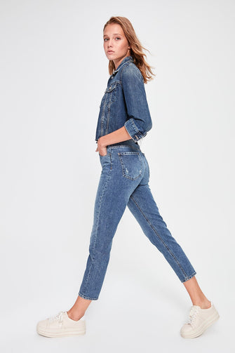 Blue High Bel Mom Jeans