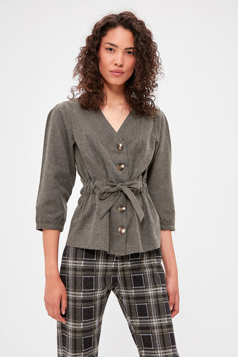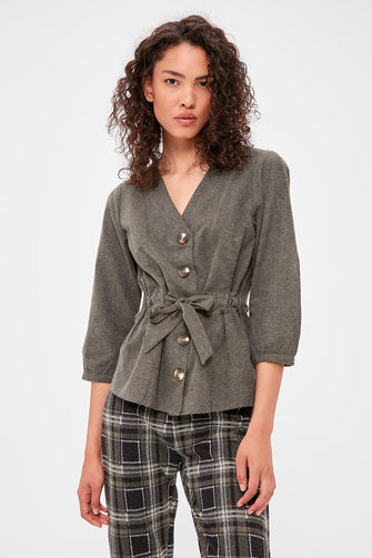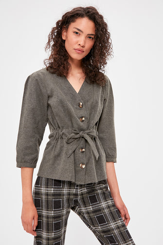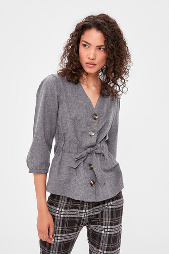 Bone Button Detail Bluz