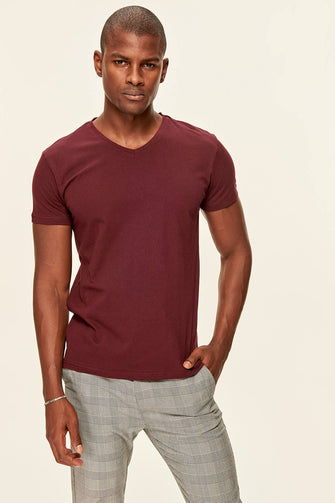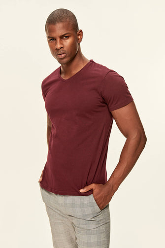 Bordeaux Men's T-Shirt Presser - Cotton V Neck TMNSS19BO0002