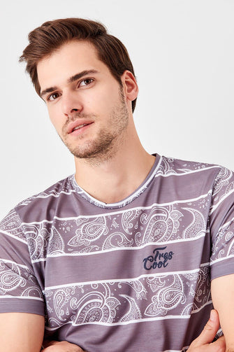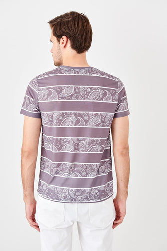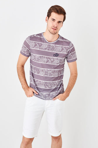 Brown Men 'S Striped Printed New T-shirt TMNSS19TS0552