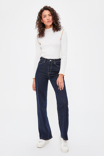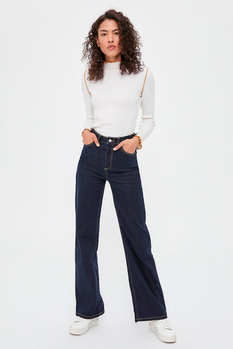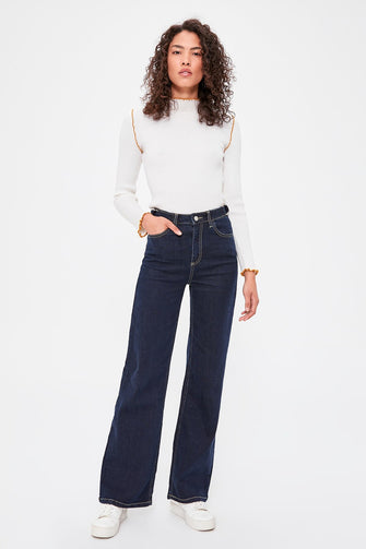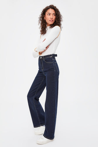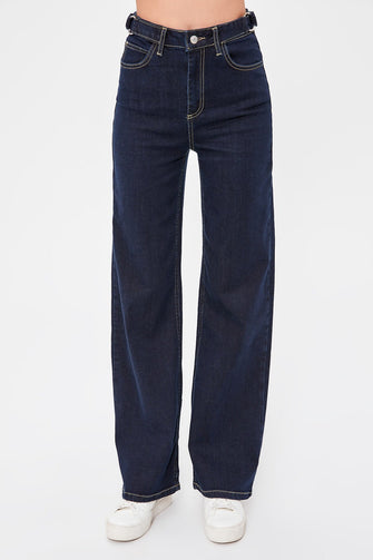 Buckle Detail High Bel Wide Leg Jeans
