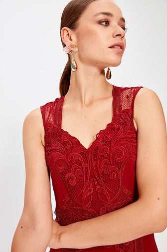 Burgundy Applique Lace Detail