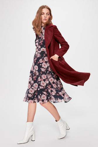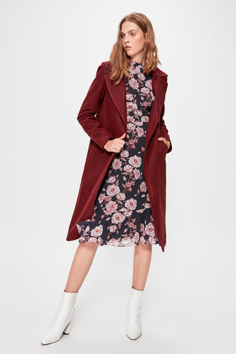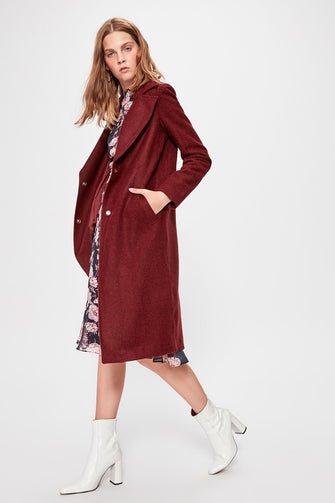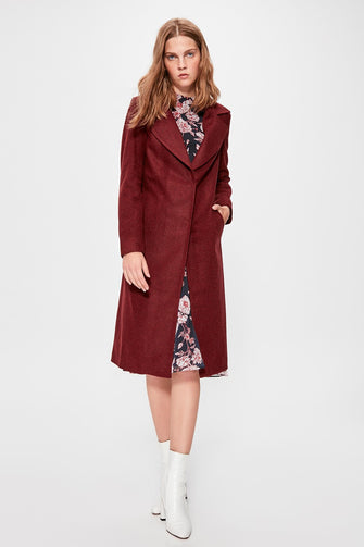 Burgundy Classic Collar Long Stamp Coat