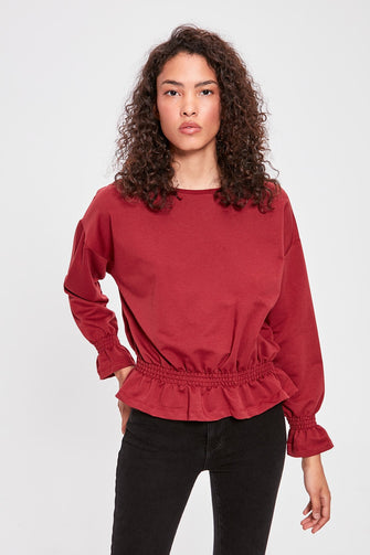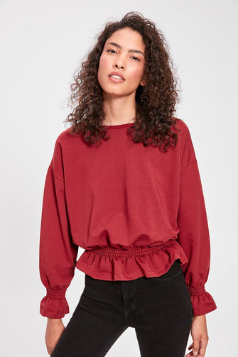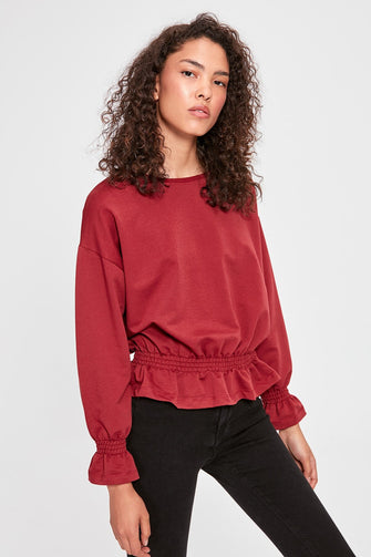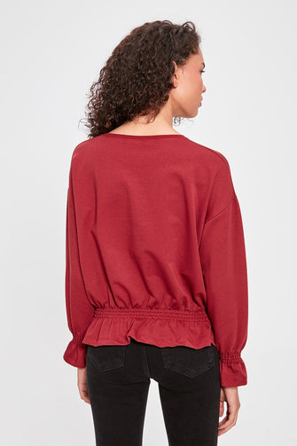 Burgundy Gipe Detailed Knitted Sweatshirt