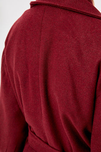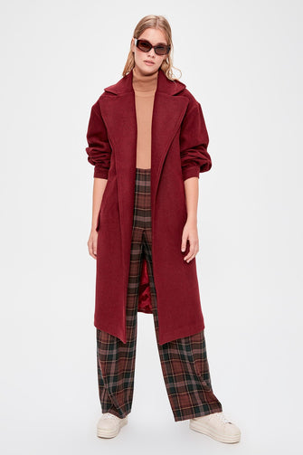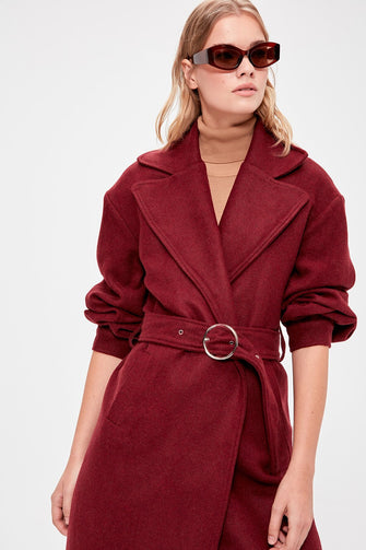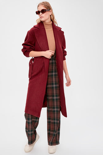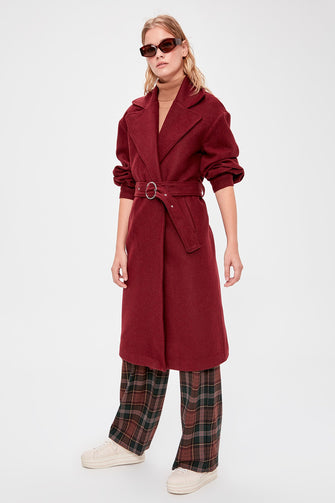 Burgundy Belt Detail Long Stamp Coat