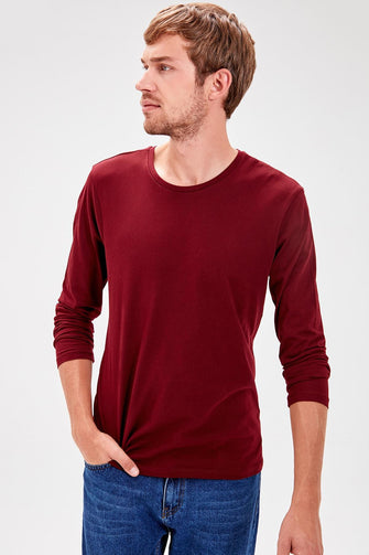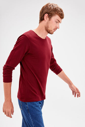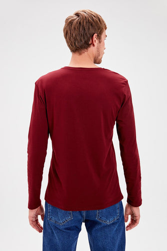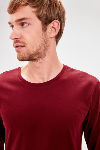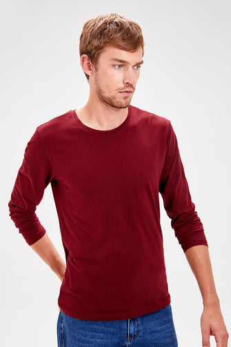 Burgundy Men 'S Bike Collar Long Sleeve Basıc New T-shirt
