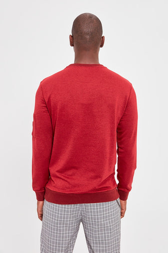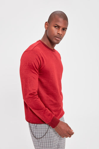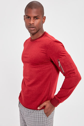 Burgundy Men 'S Bike Collar Long Sleeve Handle Zipper Detail New Sweatshirt