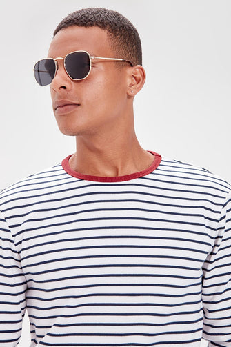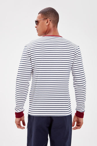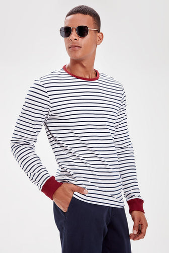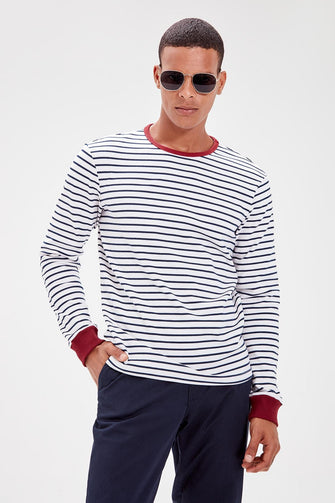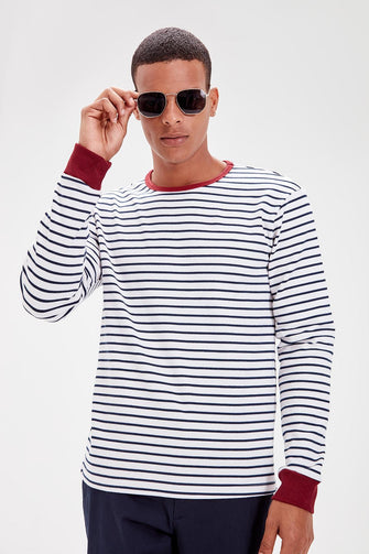 Burgundy Men 'S Bike Collar Long Sleeve Striped New Sweatshirt