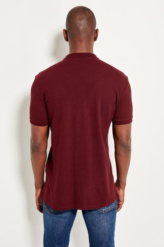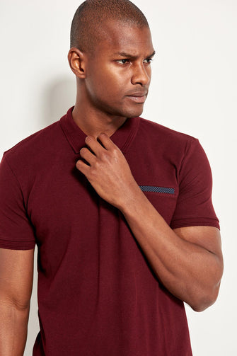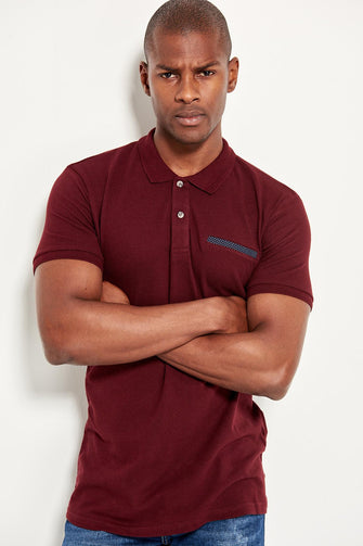 Burgundy Men 'S Cotton T-Shirt-Polo Collar Fileto Pocket Polo Collar T-Shirt