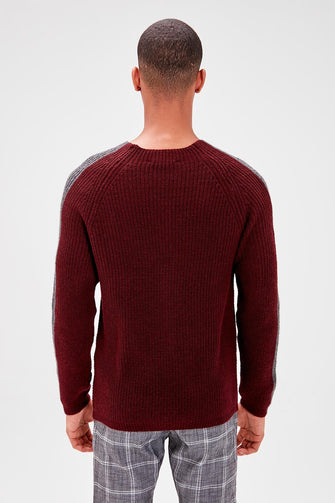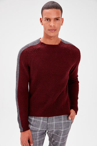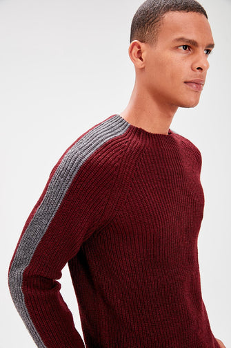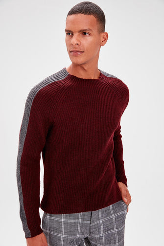Burgundy Men 'S half turtleneck Handle Stripe Knitwear Sweater