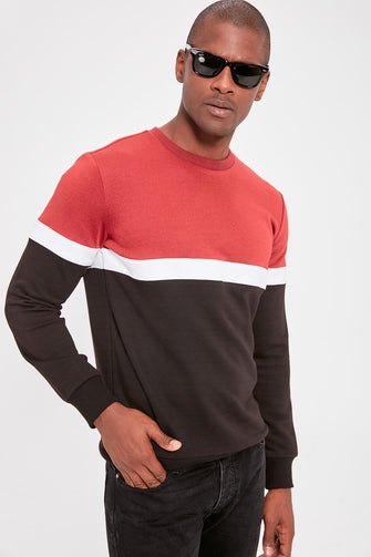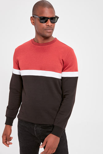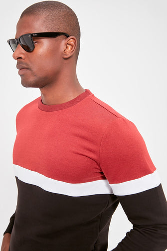 Burgundy Men 'S Long Sleeve New Panelled Sweatshirt