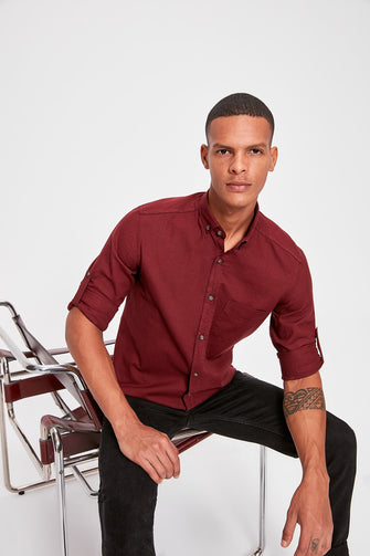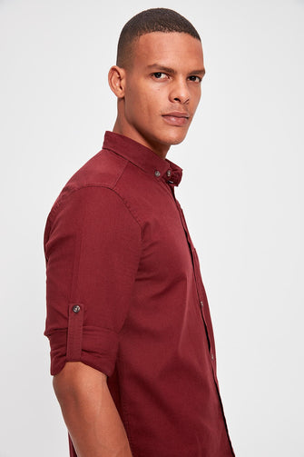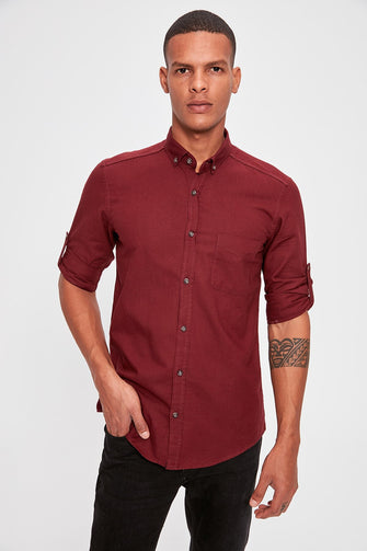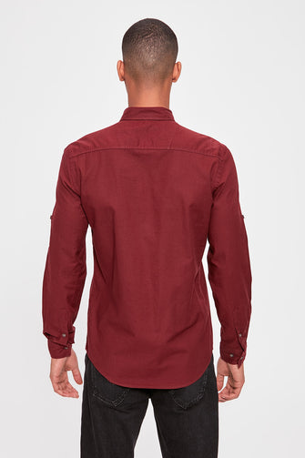 Burgundy Men 'S Single Pocket Shirt New