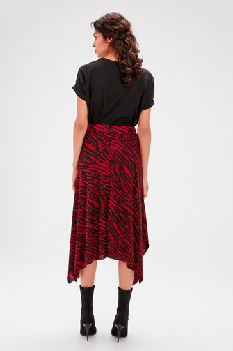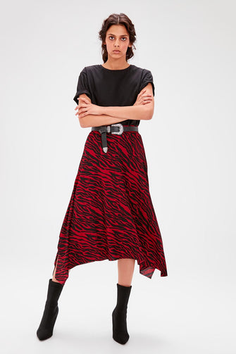 Burgundy Patterned Asymmetrical Knitted Skirt