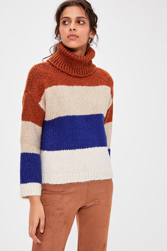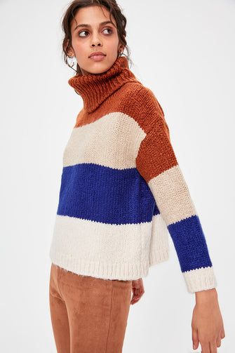 Camel Color Block Sweater Pullover