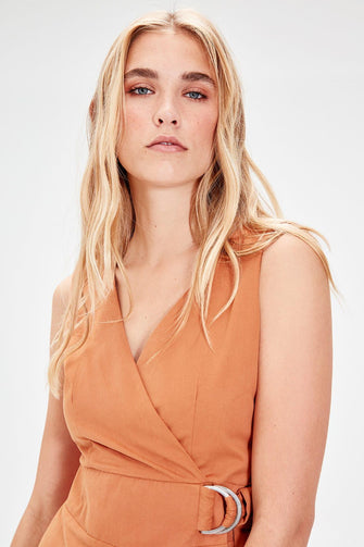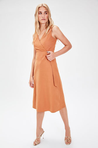 Camel Lacing Detail Dress