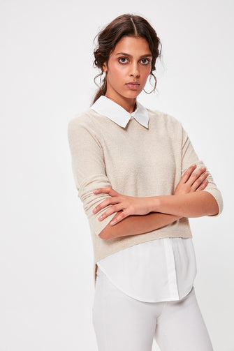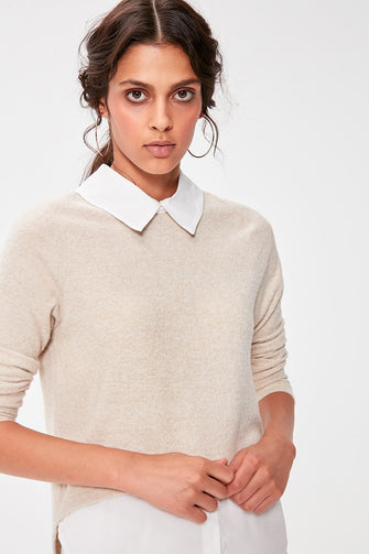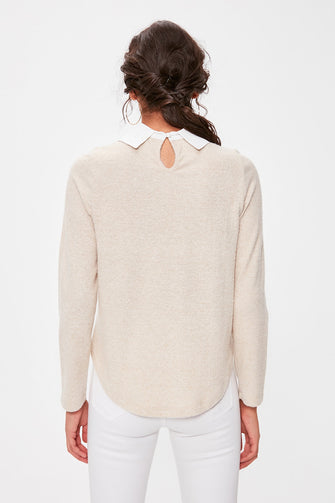 Camel Shirt Collar Knitted Blouse