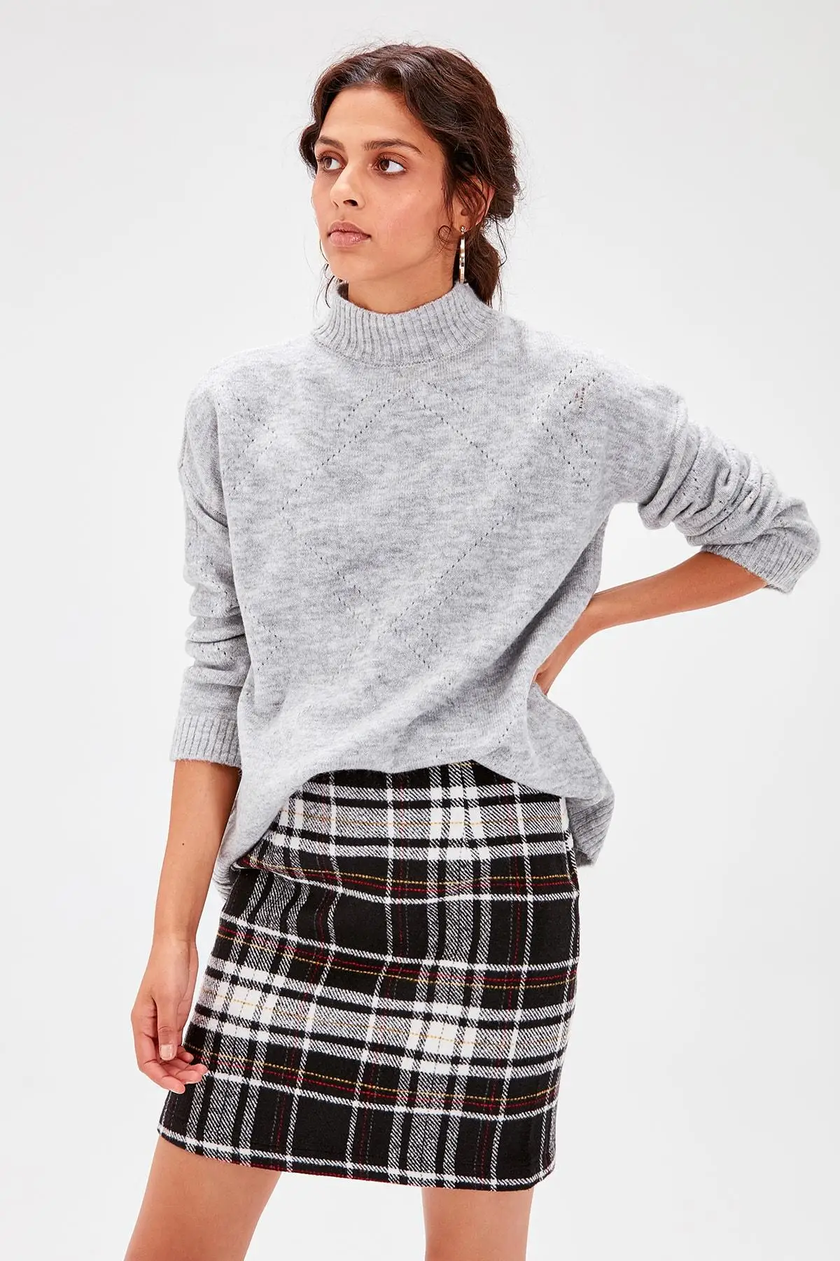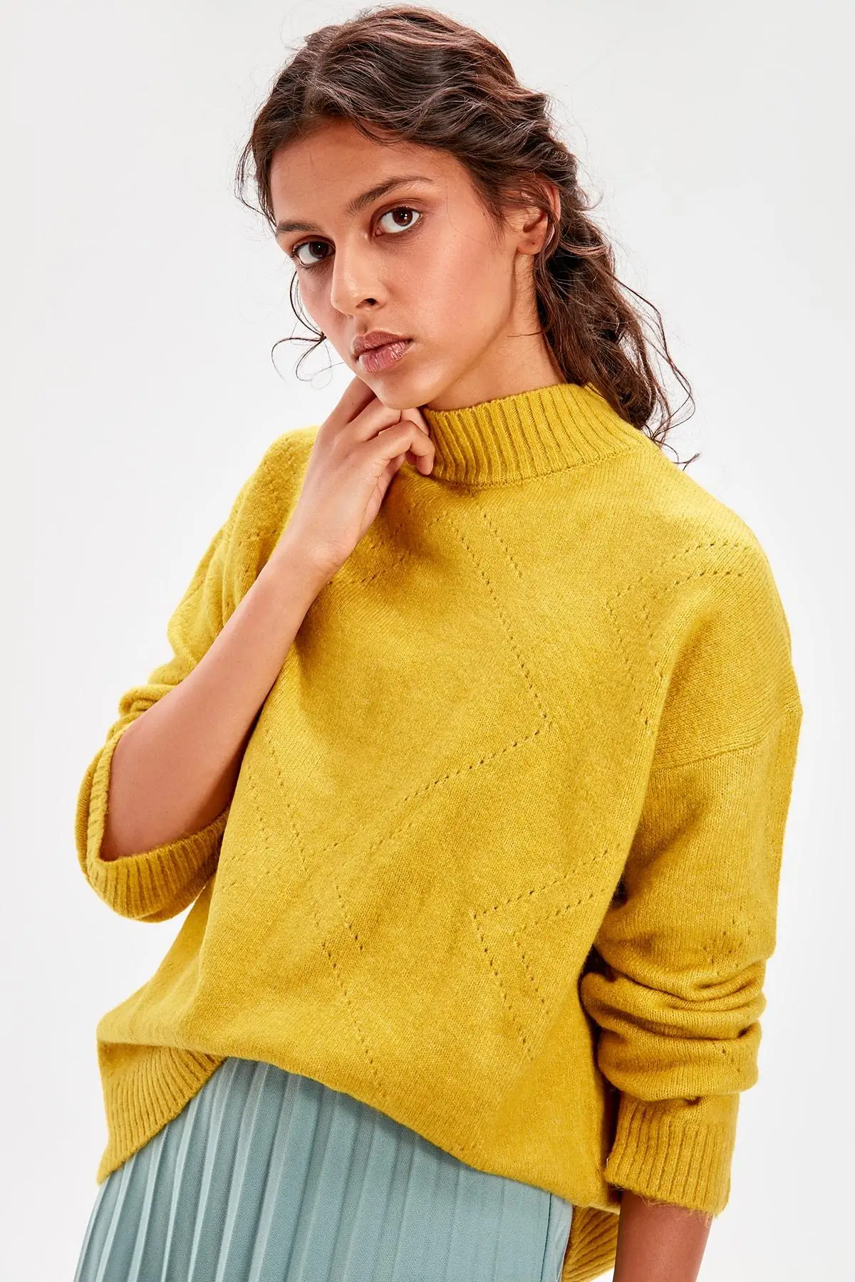 MODEL SIZE: Height: 1.75, Bust: 80, Waist: 62 Hip: 90 % 80 acrylic 20 Polyester, Sweater Our products will be sent with TRENDYOL tag.
