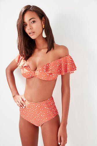 Cinnamon Polka Dot High Waist Bikini