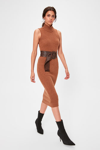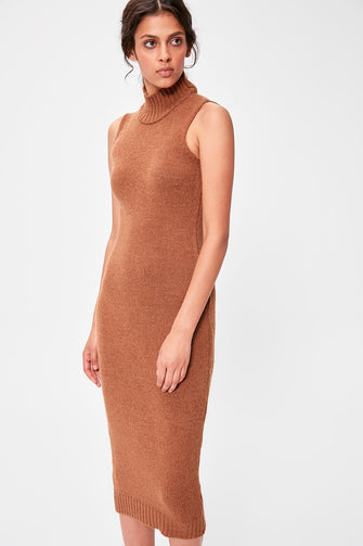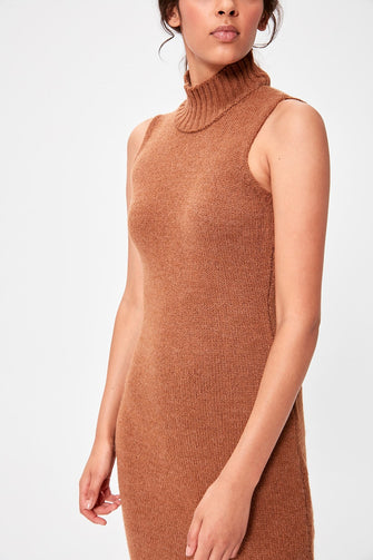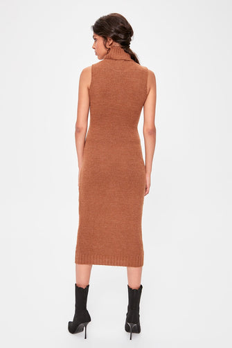 Cinnamon Turtleneck Sleeveless Sweater Dress