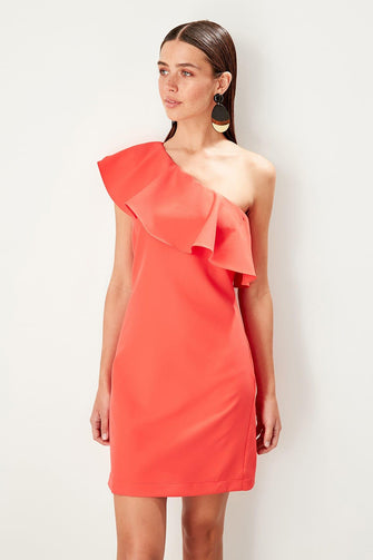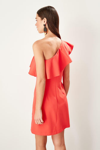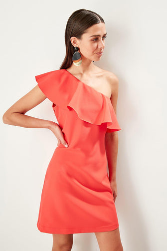 Coral Single Sleeve Frilly Dress