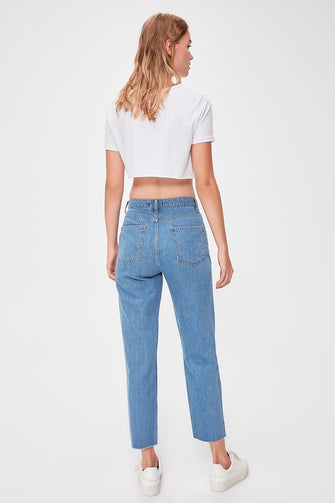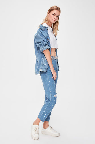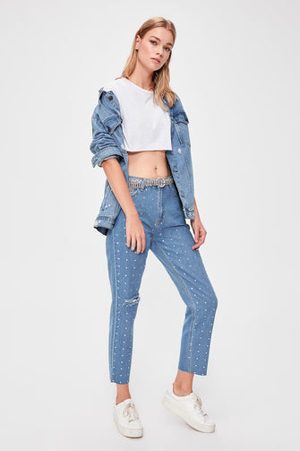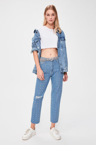 Cubic Zirconia High Bel Mom Jeans