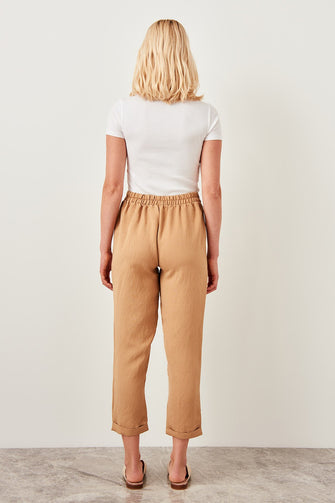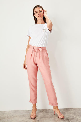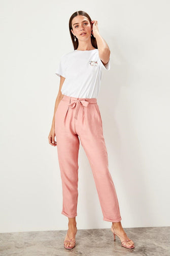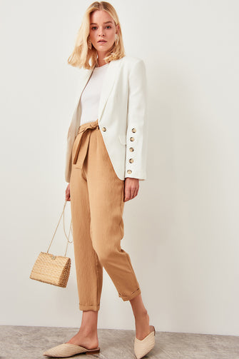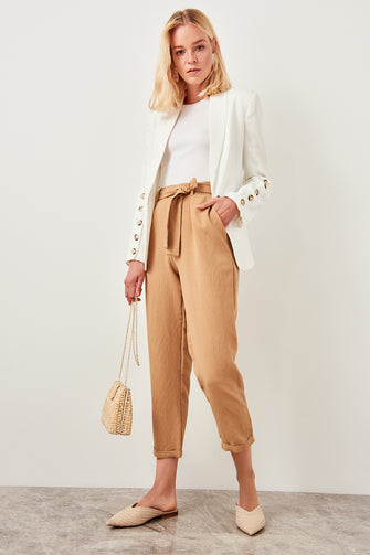 Detailed beige trousers belt