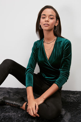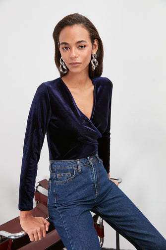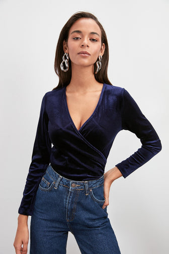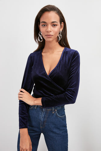 Double Breasted Collar Knitted Blouse