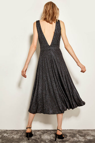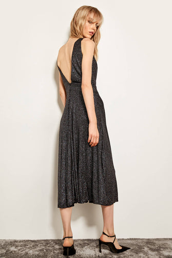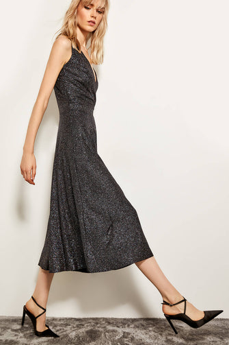 Double-breasted Collar Multi Color Shimmer Evening Dress