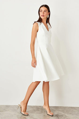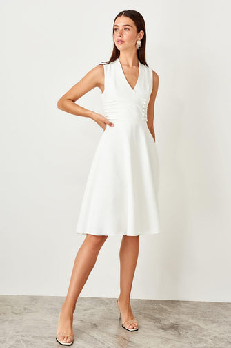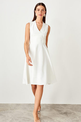 Ecru Button Detail Dress