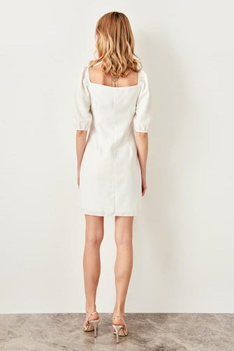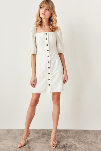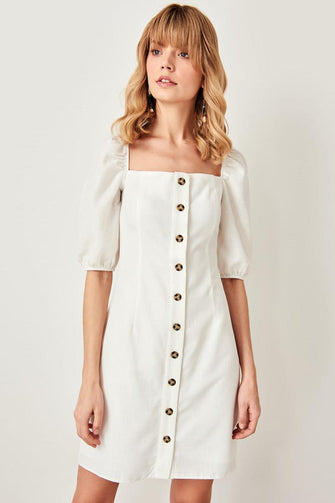Ecru Button Detail Dress