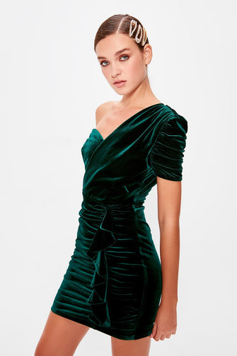 Emerald green Drape Detail Single Sleeve Dress