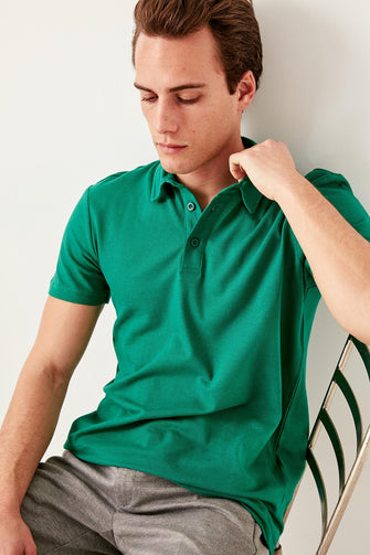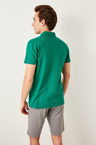 Emerald Green Men 'S Cotton T-Shirt Short-Sleeve Polo Collar T-Shirt