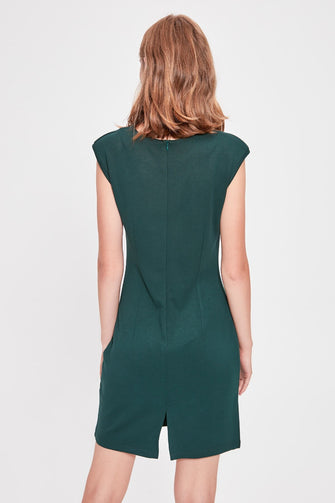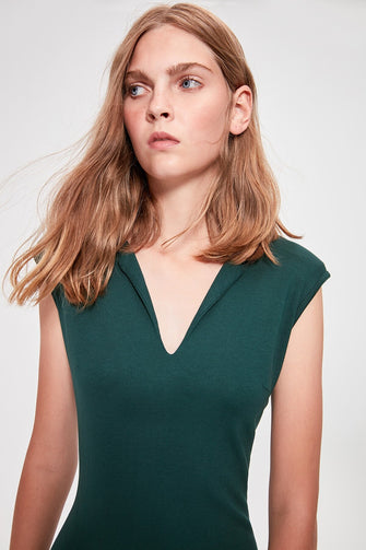 Emerald green V Neck Knitted Dress
