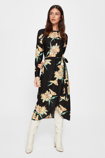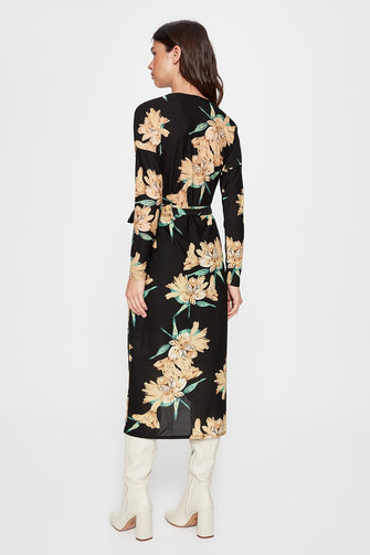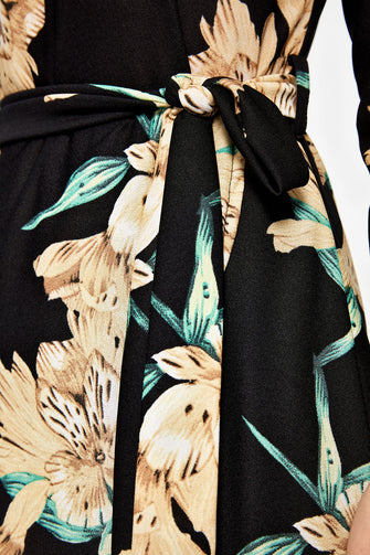 Flower Print Double Breasted Knitted Dress