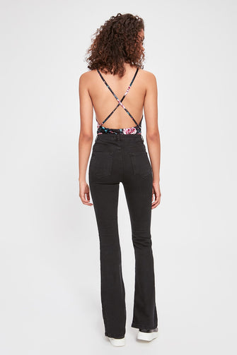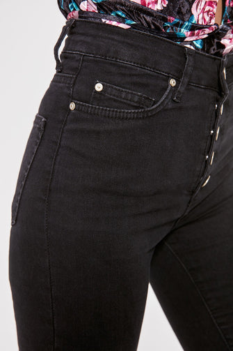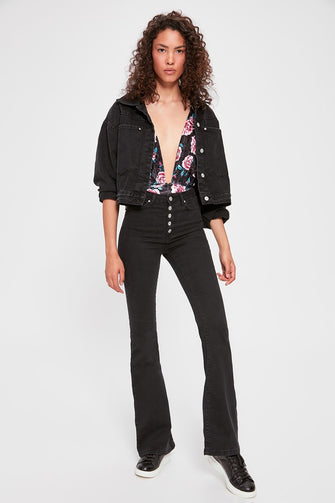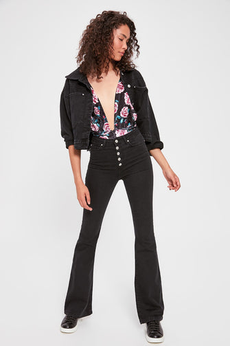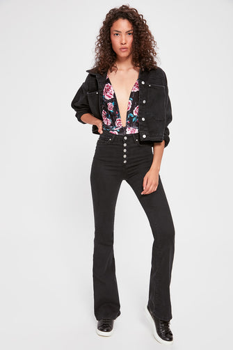 Front Button High Waist Flare Jeans