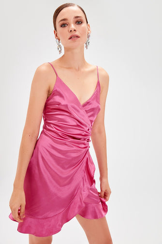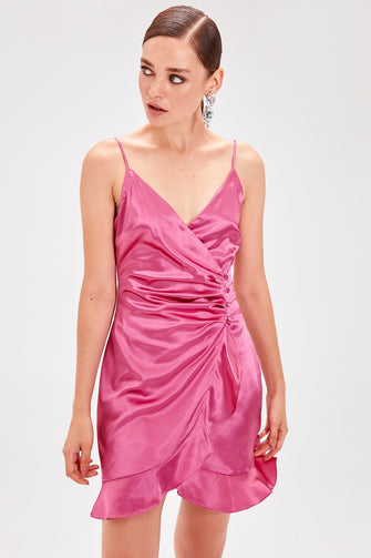 Fuchsia Double Breasted Collar Dress