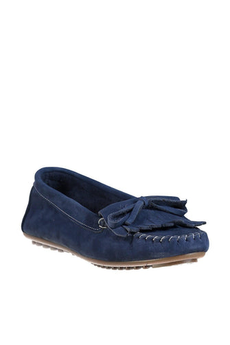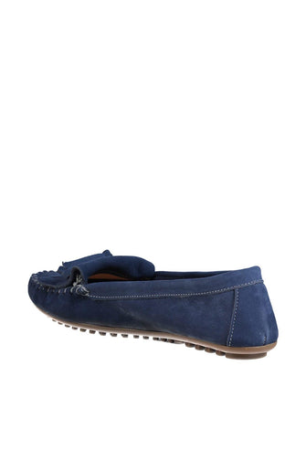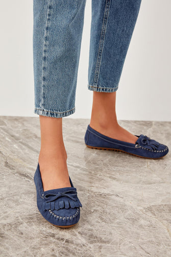 Genuine Leather Navy Blue Women 'S Loafer Shoes