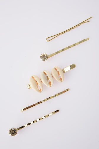 Gold Cubic Zirconia and Sea -Shelled Hair Accessory Single Size