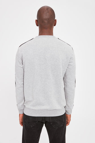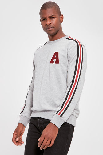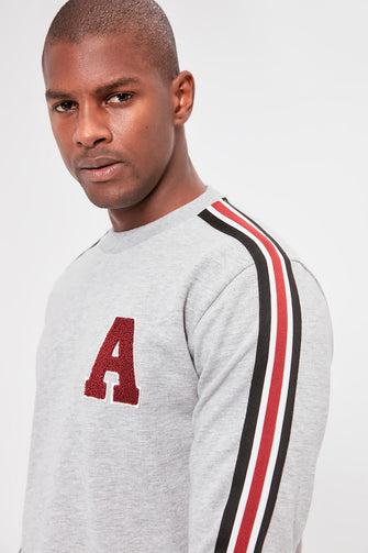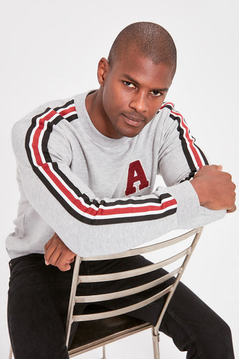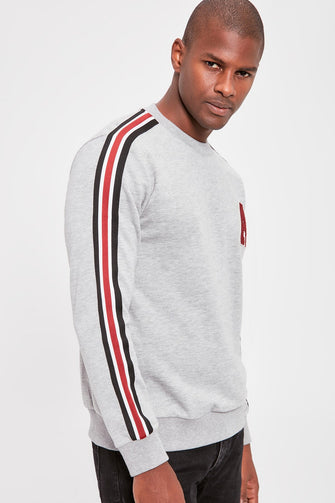 Gray Male Handle Stripe Embroidered Bike Collar New Sweatshirt
