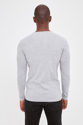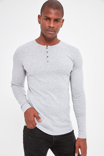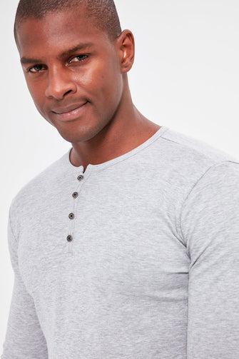 Gray Male Long Sleeve Front Button BASIC T-shirt