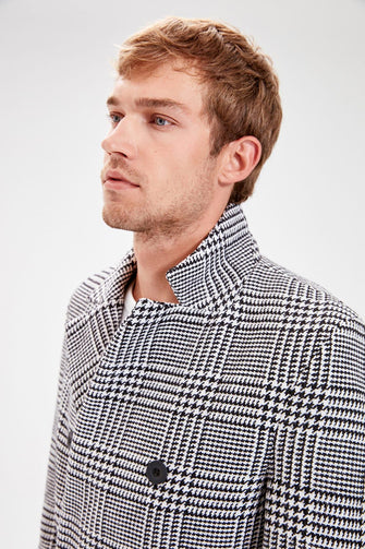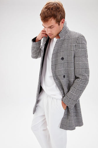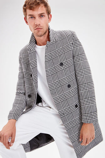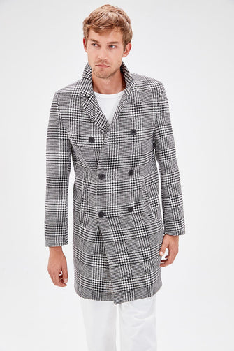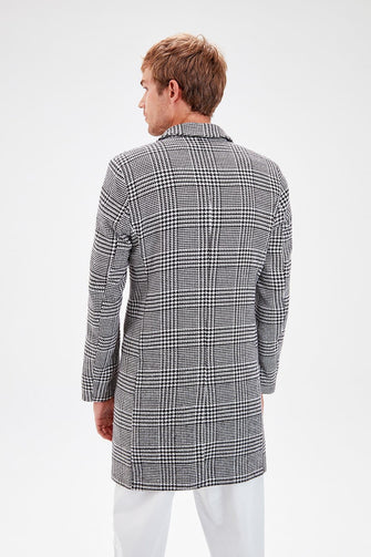 Gray Male Plaid Front Buttoned Coat New