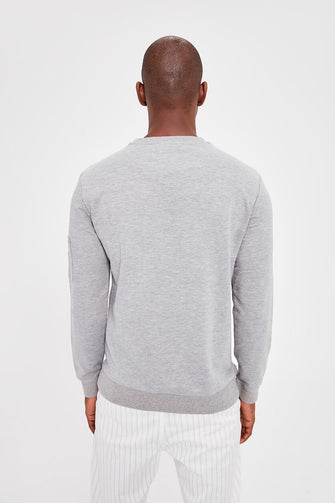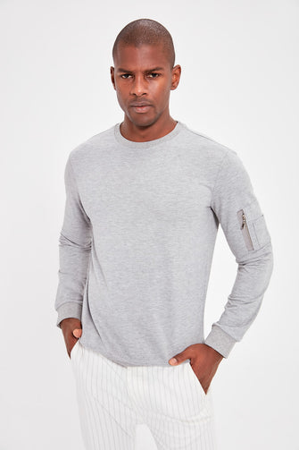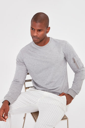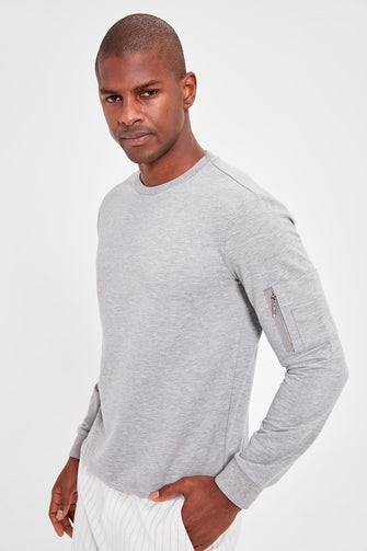 Gray Men 'S Bike Collar Long Sleeve Handle Zipper Detail New Sweatshirt