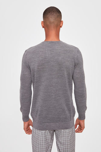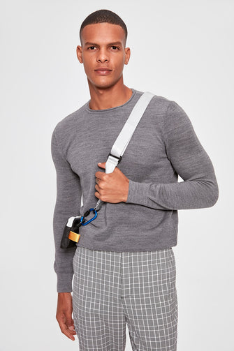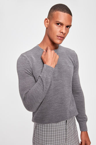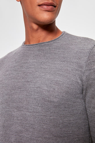 Gray Men 'S Cycling Neck Textured Cotton Knitwear Sweater New