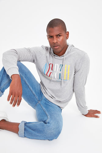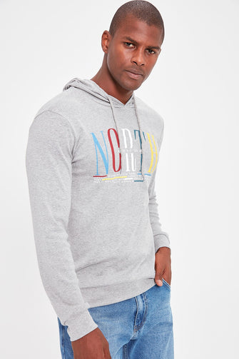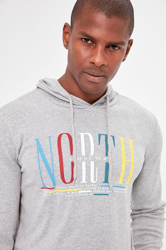 Gray Men 'S Hooded Long Sleeve Printed Thin Fabric New Sweatshirt