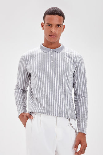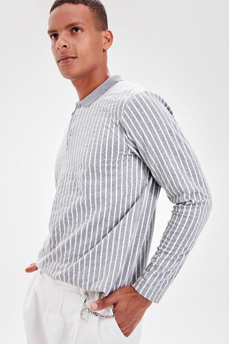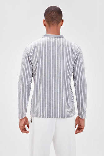 Gray Men 'S Long-Sleeve Cartoon Printed New Polo Collar Button
